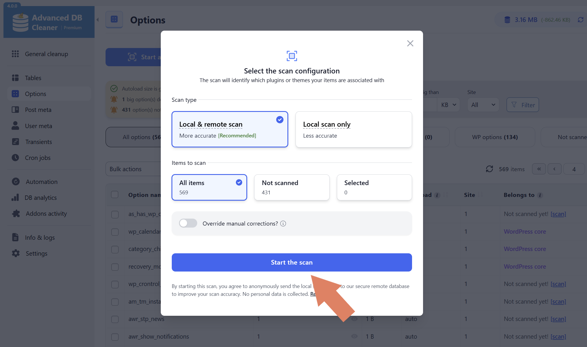 - Local + Remote scan (recommended) - performs the local scan, then compares unknown items with our large cloud database of plugins and themes for maximum accuracy